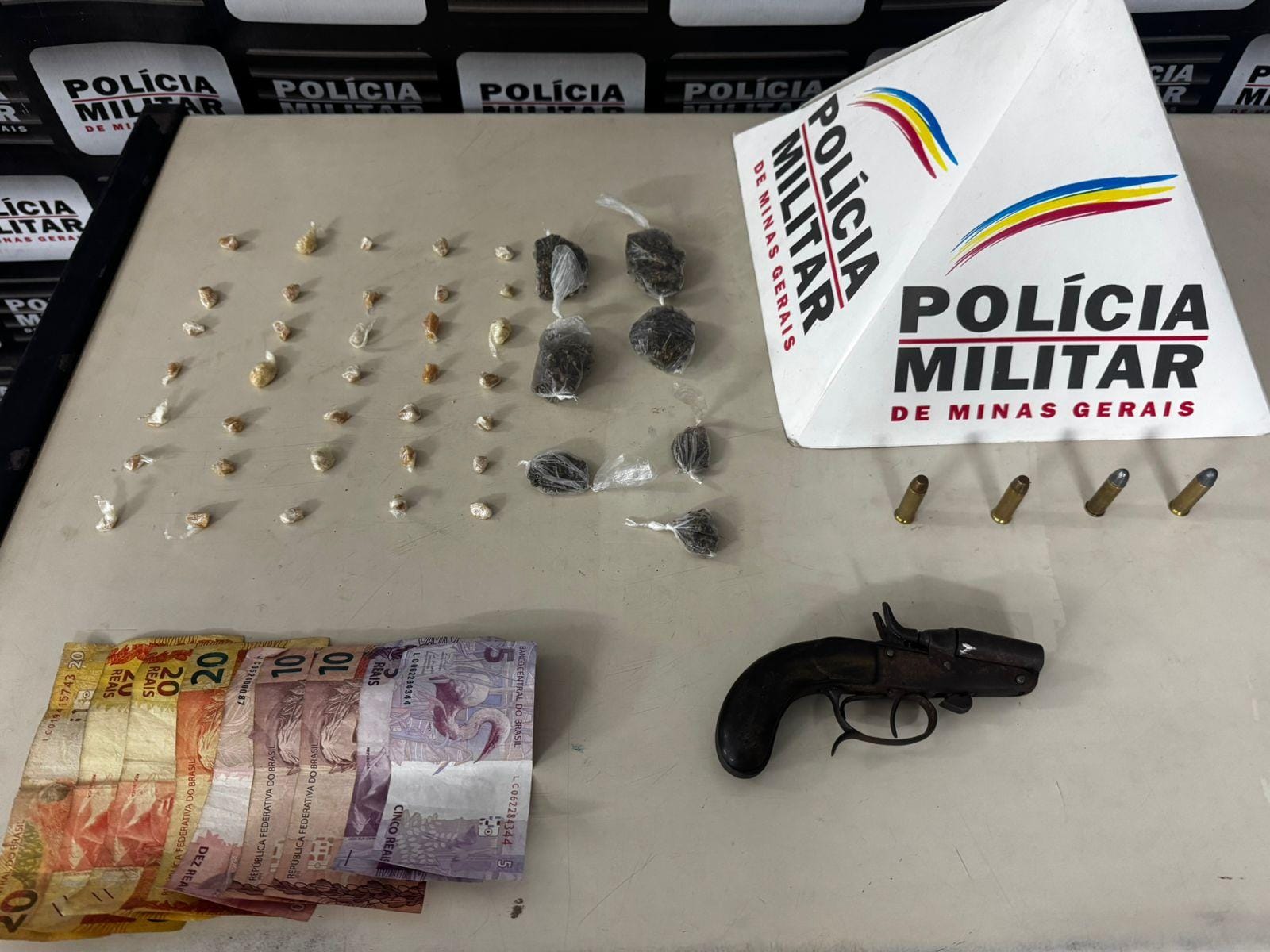 No feriado de ontem (19), por volta das 18h, policiais militares da 17ª CIA PM IND – João Monlevade prenderam um homem(21) por tráfico de entorpecentes e apreende drogas, arma, munições e dinheiro no bairro Planalto.