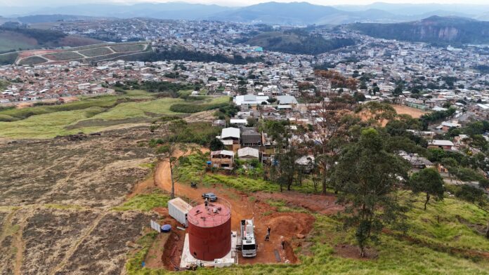 O Departamento Municipal de Águas e Esgotos (DAE) de João Monlevade está executando, em ritmo acelerado, as obras do novo reservatório de água do bairro Estrela Dalva. Com capacidade para armazenar 200 mil litros (200 m³), a estrutura metálica já está em fase final de montagem e deve ser concluída até domingo (29).