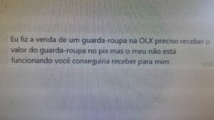 Estão entrando em contato com pessoas em seu nome, dizendo ” Eu fiz a venda de um guarda-roupa na OLX preciso receber o valor do guarda-roupa no pix mas o meu não está funcionando você conseguiria receber para mim”.