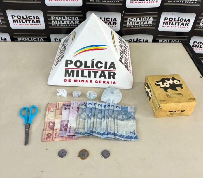 De imediato a equipe policial deslocou até o endereço e de posse das características do possível autor (19), realizou a abordagem a um indivíduo específico e em busca pessoal foi encontrado dinheiro e substância análoga à maconha no bolso de sua bermuda.