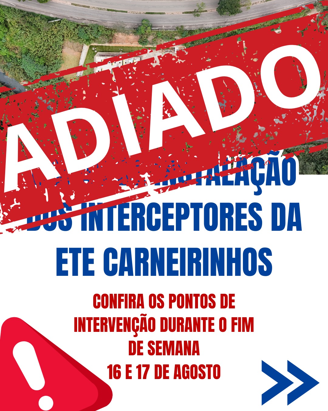 A Prefeitura de João Monlevade, por meio do Departamento de Águas e Esgotos (DAE), informa que a interdição programada para este sábado (16) na avenida Getúlio Vargas, no trecho entre a Praça Domingos Silvério e o Supermercado BH, foi adiada devido a problemas técnicos.