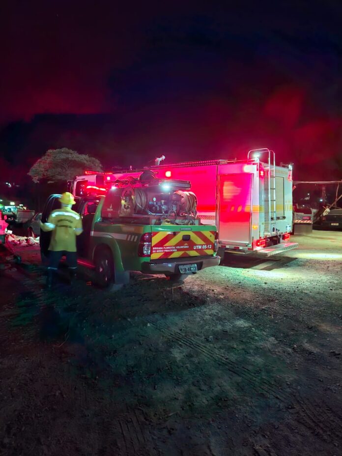 As chamas se aproximavam de uma oficina próxima à rodovia, oferecendo risco à estrutura e à segurança das pessoas. Graças à rápida ação das equipes, o fogo foi controlado antes de causar danos, evitando prejuízos maiores.