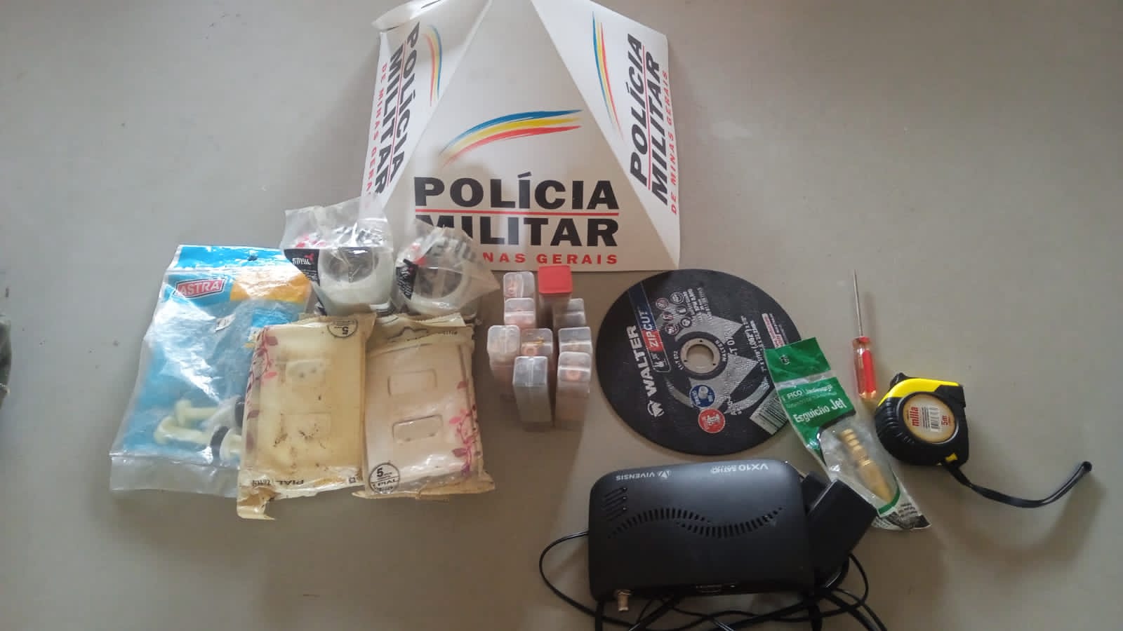 Diante da atitude suspeita, os militares realizaram a abordagem seguida de busca pessoal, sendo localizados na bolsa diversos objetos de material de construção e ferramentas embaladas.