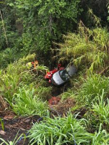 Um voluntário do SEVOR foi o primeiro a acessar local, descendo a ribanceira para prestar assistência imediata às vítimas, que ja estavam fora do veículo.