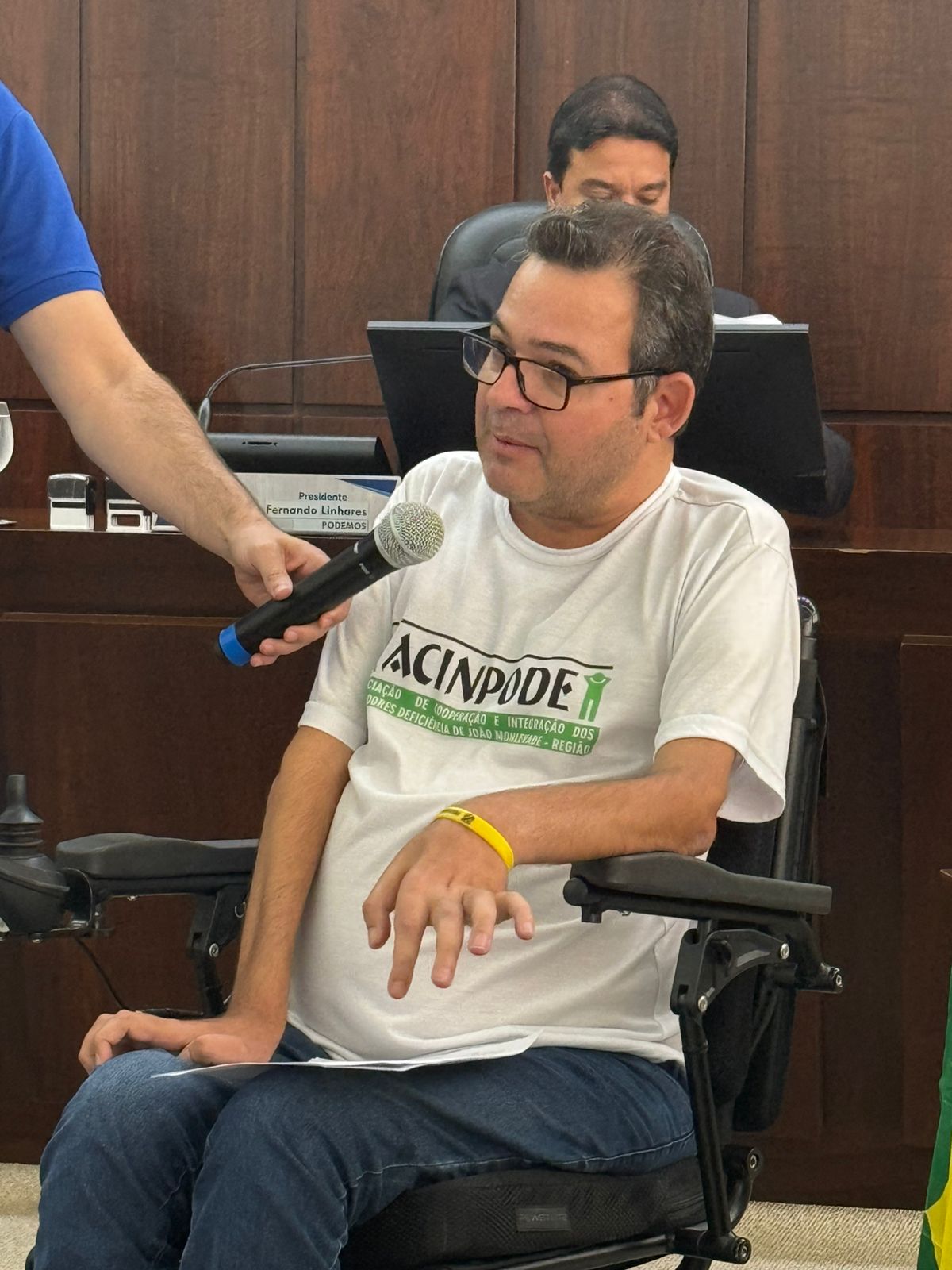 Após a fala, o presidente da Câmara, Fernando Linhares, parabenizou Lenean pela iniciativa de utilizar a tribuna e reconheceu o trabalho desenvolvido pela associação. Ele ressaltou o compromisso e a seriedade da atual gestão da ACINPODE e destacou a importância da atuação da entidade na defesa dos direitos das pessoas com deficiência.