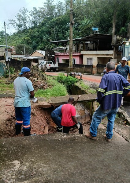 A ação foi realizada após vistoria técnica da Defesa Civil, que identificou comprometimento estrutural em uma parede de concreto existente às margens do córrego. A estrutura apresentava trincas e acabou cedendo, situação agravada pelo período chuvoso, gerando risco potencial à estabilidade do terreno e à segurança de uma residência situada nas proximidades.