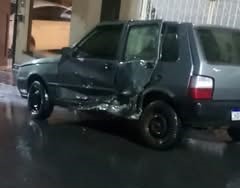 Posteriormente, o Fiat/Uno Mille Fire foi localizado estacionado na rua São Lourenço, no mesmo bairro, apresentando avarias compatíveis com o sinistro.
