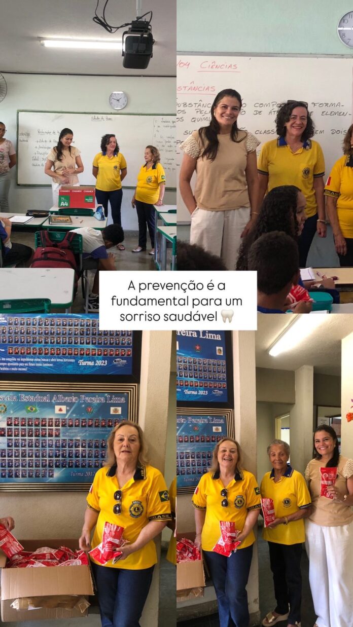 Na tarde do dia 09/04/2026, Lions Clube de João Monlevade Centro realizou uma ação voltada a saúde bucal na Escola Estadual Alberto Pereira Lima situada na Avenida Armando Fajardo, s/n, no bairro Loanda, em João Monlevade – MG.