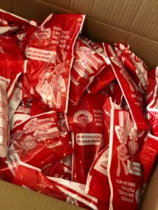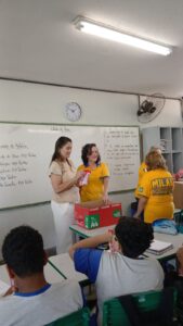 Atrás do pacote onde estão os kits, tem toda informação de como realizar uma escovação adequada o que fez com que os alunos observassem o pacote no todo. A Dra. Warlenia sugeriu que os alunos levassem o kit que estavam ganhando para escola onde poderiam dar continuidade a limpeza dos dentes, pois assim, não ficava um intervalo tão grande até a hora da escovação noturna. Esta ação faz parte da iniciativa do programa “Sorriso Saudável, Futuro Brilhante” da Colgate e é uma iniciativa global de educação em saúde bucal que visa prevenir cáries e promover hábitos de higiene desde a infância, um programa de educação em saúde oral que capacita crianças a alcançar um futuro saudável e brilhante.